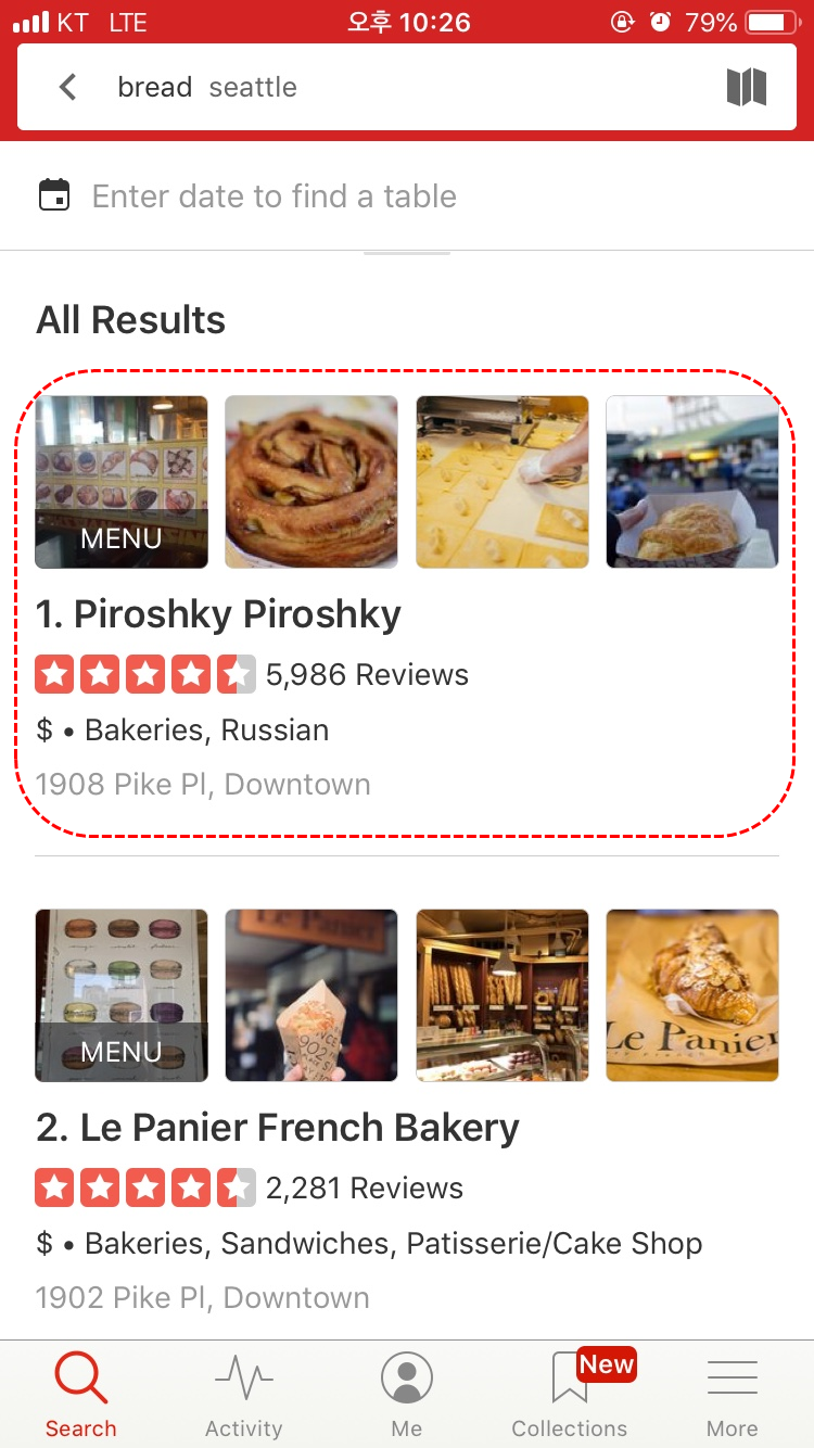 - yelp 어플 다운받아서 찾아보시면 유저들이 올려놓으은 다양한 빵 사진이 있으니 참고하시면 되겠습니다.