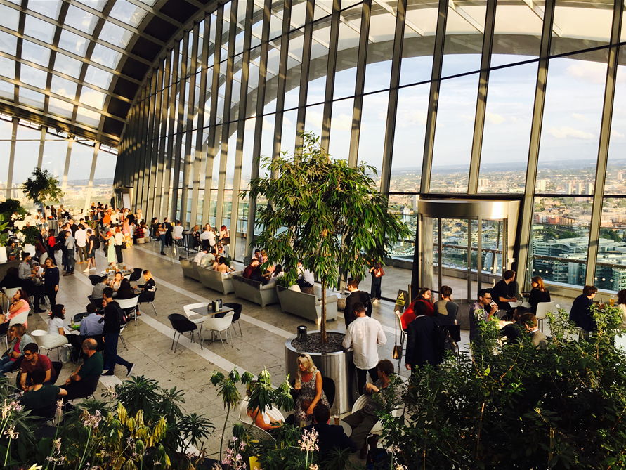 스카이가든은 정말 반드시! 꼭! 가봐야 하는 곳입니다. 런던 시내를 고층에서 구경할 수 있을 뿐만 아니라, 내부도 통유리로 되어있어 트여있는 느낌 + 인테리어가 상당히 멋있는 곳입니다.