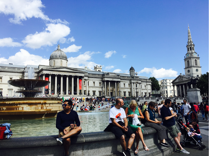 트라팔가광장은 내셔널 갤러리를 바로 뒤에 둔, 트라팔가해전의 승리를 기념하기 위해 조성한 광장입니다. 탁 트여있는데다 분수도 있어서 멋있기도 하고, 미술에 관심이 많으신 분들은 내셔널갤러리에 들러서 구경하셔도 좋을 것 같습니다.