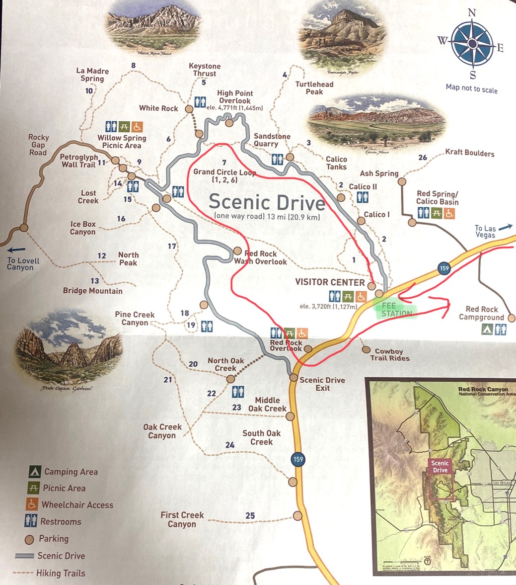 레드락캐년을 가장 편하게, 속성으로 볼 수 있는 코스는 Scenic Drive 입니다.