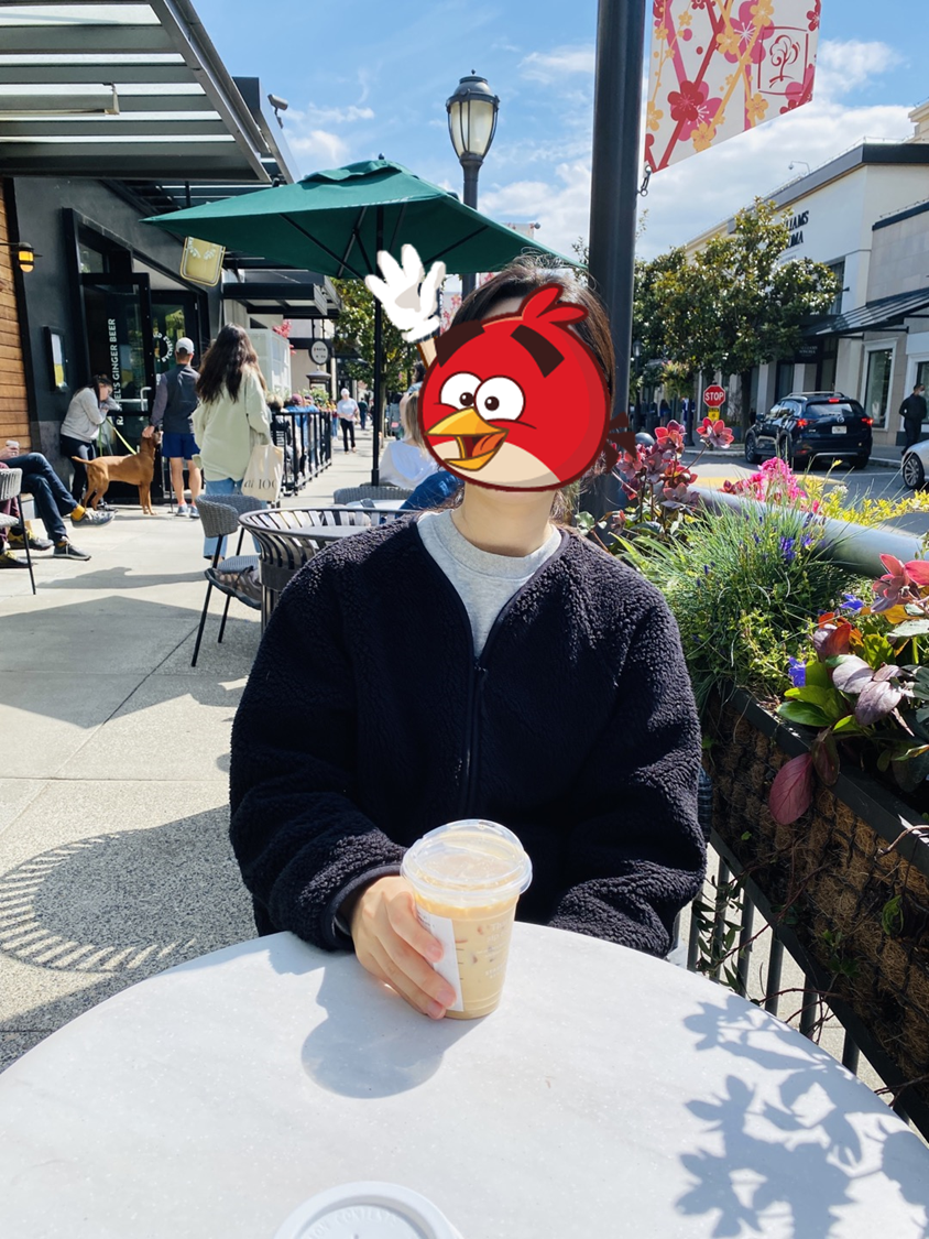 스타벅스 매장 옆에 있는 야외 테이블에 앉아서 커피도 마시구요 ㅋㅋ (왜 남이 찍어주는 내 얼굴은 이상한것인가....)