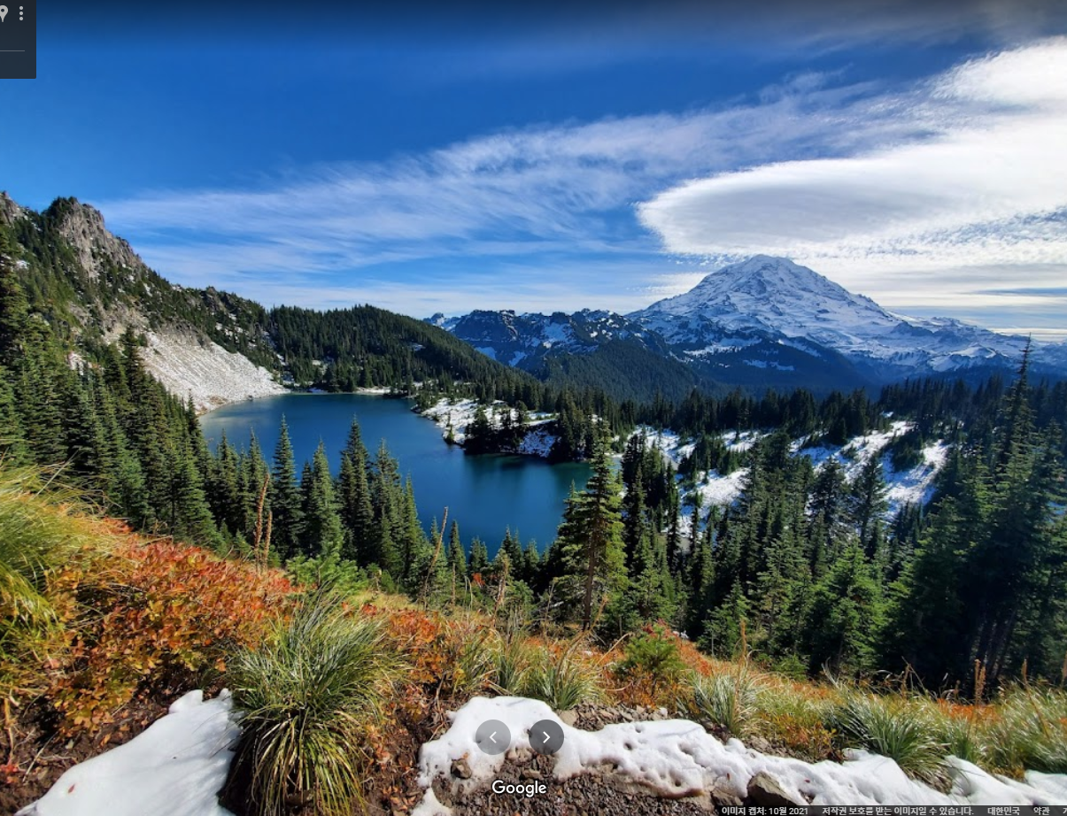 만년설이 있는 높이 4,392m의 마운트 레니에 입니다. 구글에 검색하면 마운트 레니에라고 나오네요. (레이니어라고도 많이 부르는듯?) 시애틀 가셔서 자동차들 자세히 보시면 번호판 배경이 거의 전부 레니어 산입니다 ㅋㅋ