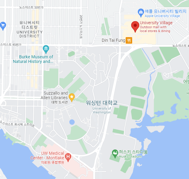 요새 현지인들 사이에서 핫하다는 유빌리지에도 다녀왔습니다. 위치상으로는 유덥 위에 있네요! 워싱턴 대학교 구경가셨다가 들러도 좋을 듯 해요 ㅎㅎ
