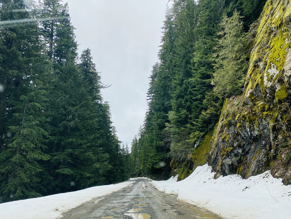 절반정도 갔을 때 길에 눈이 보이기 시작했습니다......... 이 때 진짜 포기하고 차를 돌렸어야 했는데........