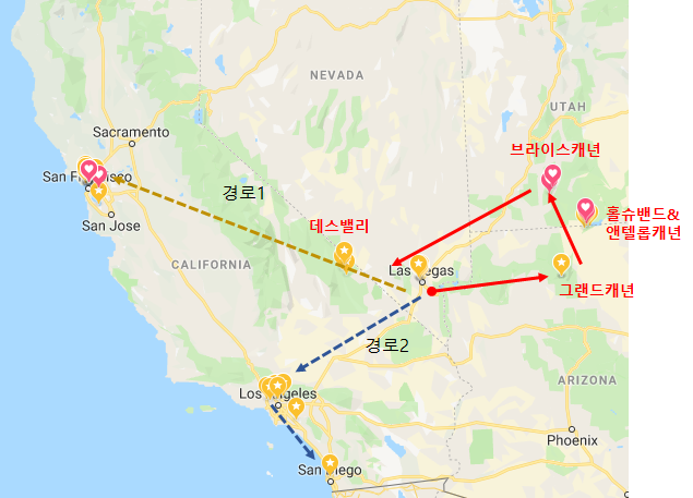 제가 가장 최근 다녀왔던 코스는 (라스베가스+캐년+ 샌프란) --- A
