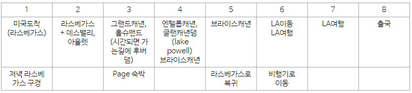 ※ 렌트가 아닌 경우 캐년 투어상품 일정을 맞춰서 짜기